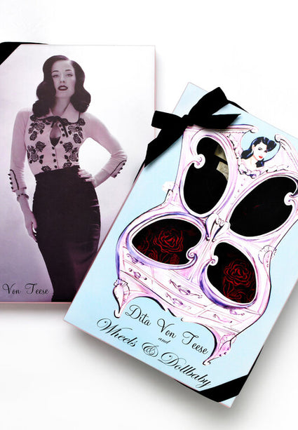 The new Dita Cardigan set features six limited edition pieces to be worn with a must have sexy, signature Wheels & Dollbaby original stretch satin skirt to complete the look.